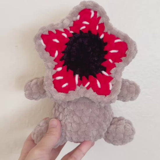 This Crochet Baby Demogorgon Plushie is a handmade amigurumi stuffed animal perfect for horror fans, collectors, and anyone who loves unique geeky gifts. Soft, cuddly, and lovingly crafted stitch by stitch, this adorable creature brings a playful twist to the iconic monster.