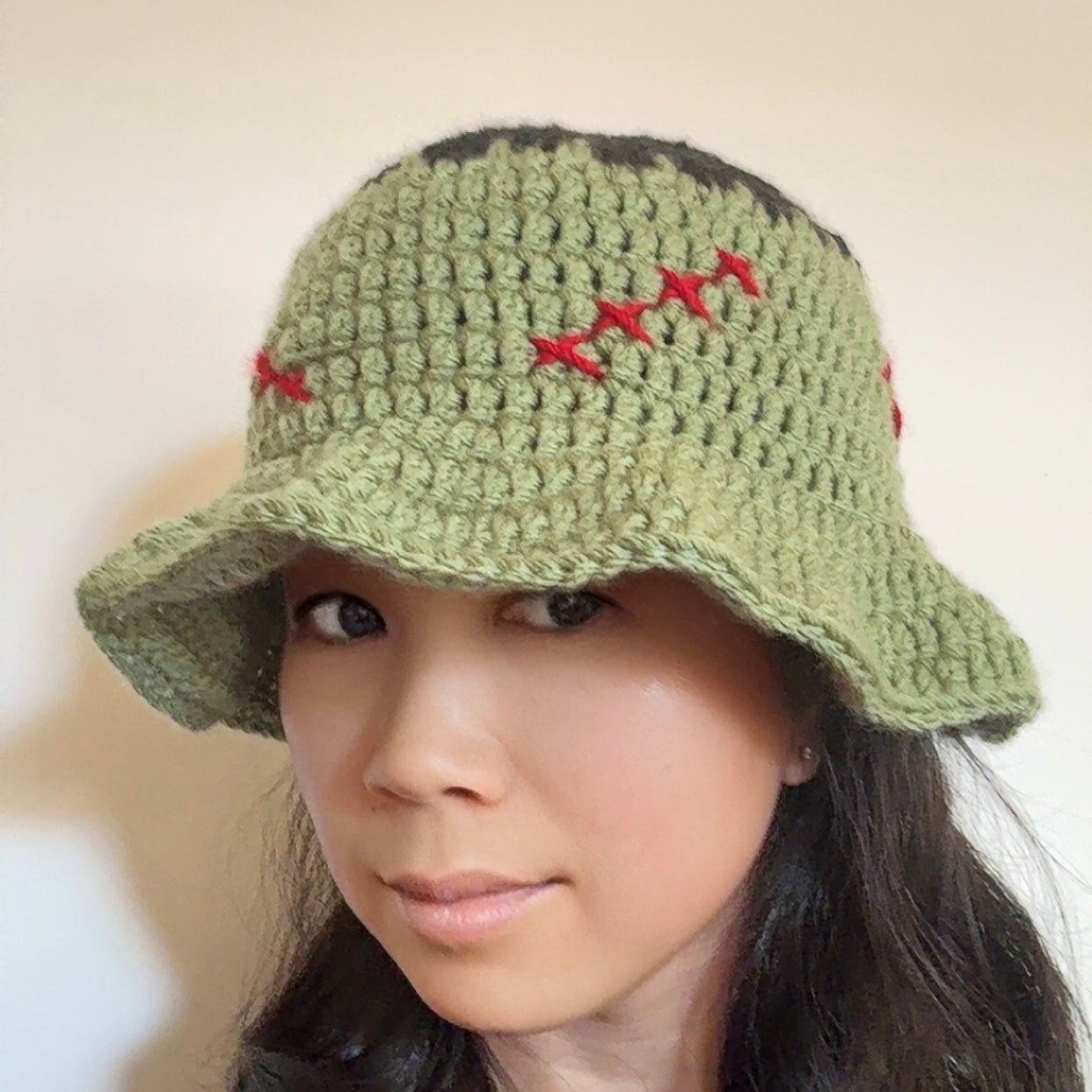 Add this adorable and one-of-a-kind bucket hat to your wardrobe.